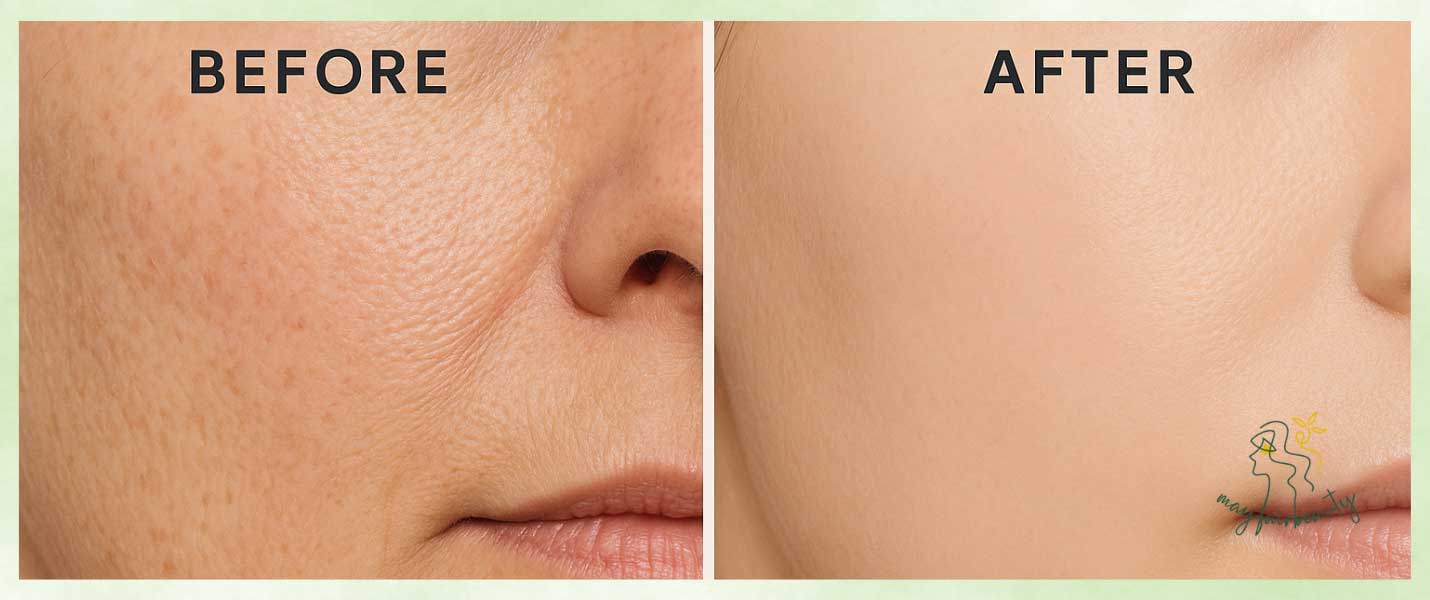 با پاکسازی منافذ و تنظیم تولید سبوم، ظاهر منافذ کوچکتر دیده میشود و براقیت پوستهای چرب کاهش مییابد. -